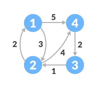 Given a directed graph G with weights on the edges, we define the shortest path between two vertices i and j as a path with the minimum total weight. The all-pairs of shortest paths problem is to find the shortest path between every pair of vertices in the graph.