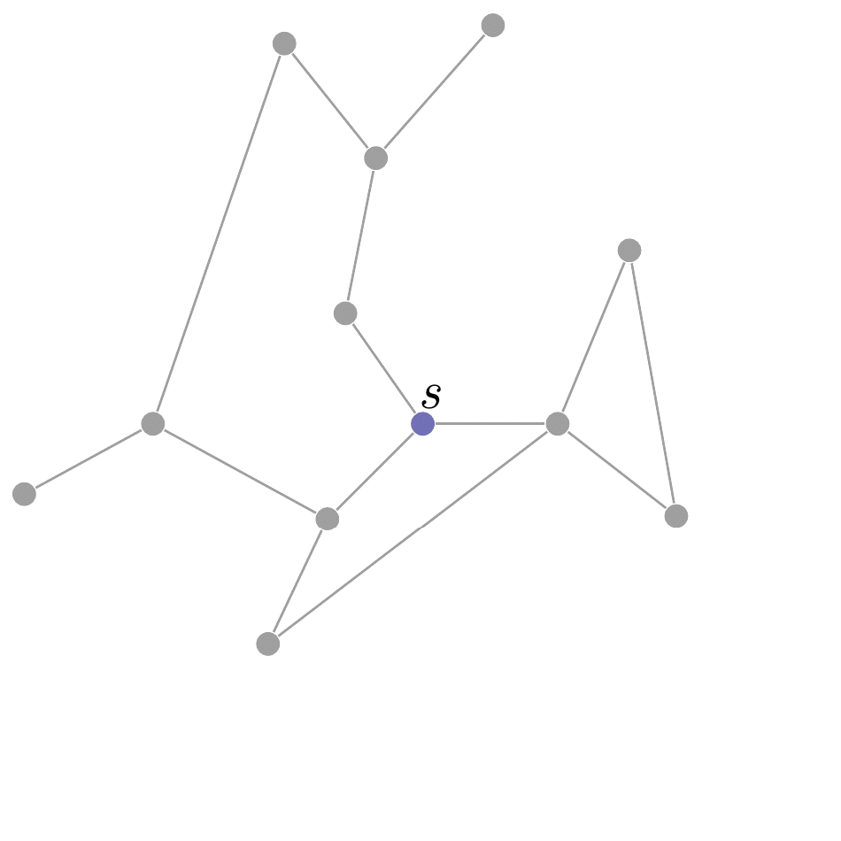 Given a graph G = (V, E), where V is the set of nodes and E is the set of edges, a breadth-first search (BFS) is a graph traversal algorithm that starts at a given node s of G, and explores all the nodes at distance 1 from s, then all nodes at distance 2 from s, and so on (cf. below).
